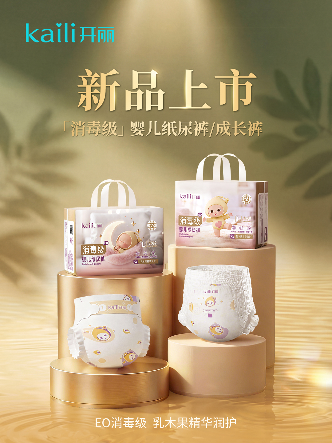 深耕母婴护理22年的开丽,依托健朗医用深厚医疗器械研发与生产底蕴,正式推出消毒级腰贴型婴儿纸尿裤、消毒级成长裤(乳木果精华款)双品矩阵,以“消毒级卫生+乳木果润护”双重核心优势,为0–24个月婴幼儿提供从初生到学步的全周期护理方案,用消毒级安全品质守护宝宝娇嫩肌肤每一天。