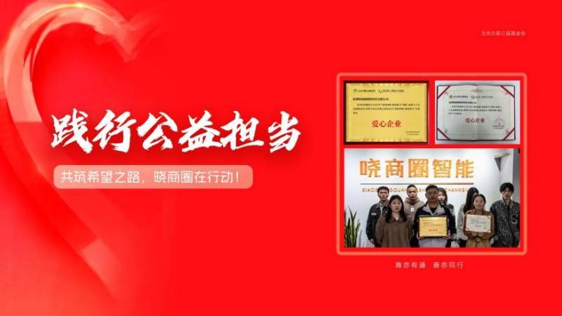 近日,北京众爱公益基金会为杭州晓商圈网络科技有限公司(下称“晓商圈”)授予“爱心企业”称号,表彰其对“爱的回响·康复助力”专项基金的积极支持。作为一家深耕实体行业数字化的互联网科技企业,晓商圈不仅凭借技术实力入选“品牌强国优选工程·AI数字营销行业优选成员单位”,更依托国企控股的责任底色,在商业发展与公益实践中找到平衡,展现出科技企业的多元价值。