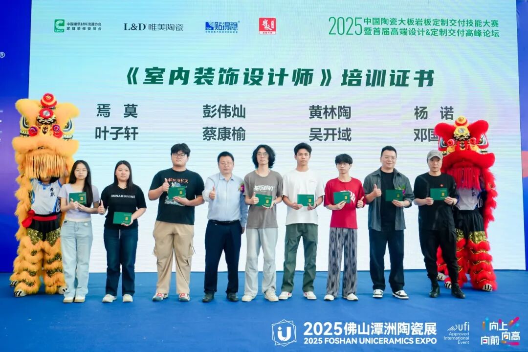 随后,颁发了《室内装饰设计师》培训结业证书。获得证书的优秀学员包括刘伟东、赵金良、张玉巧、焉莫、彭伟灿、黄林陶、杨诺、叶子轩、蔡康榆、吴开域、邓国余,他们通过专业培训,提升了自己的技术和设计能力,为日后进入岩板定制交付行业打下了坚实的基础。