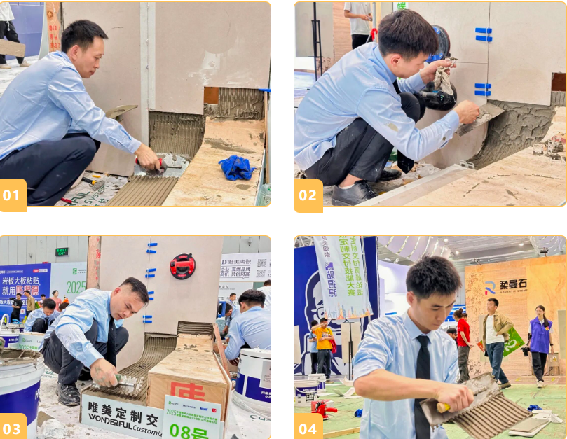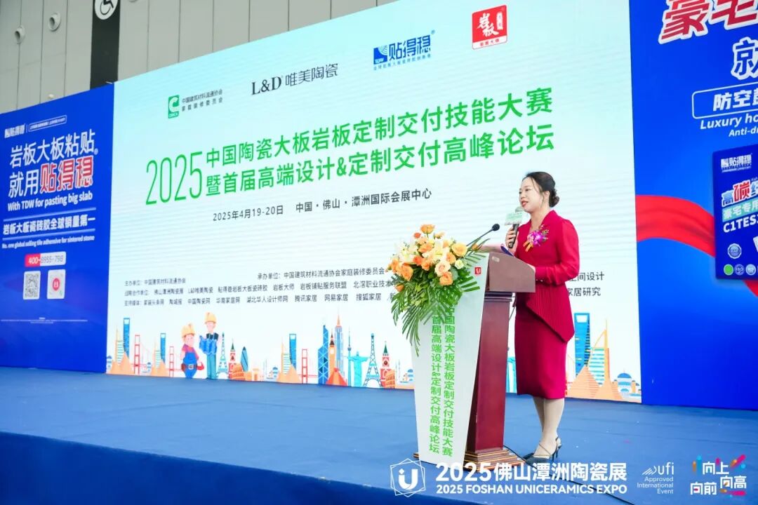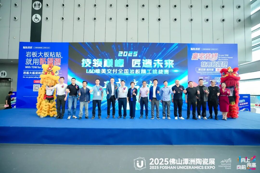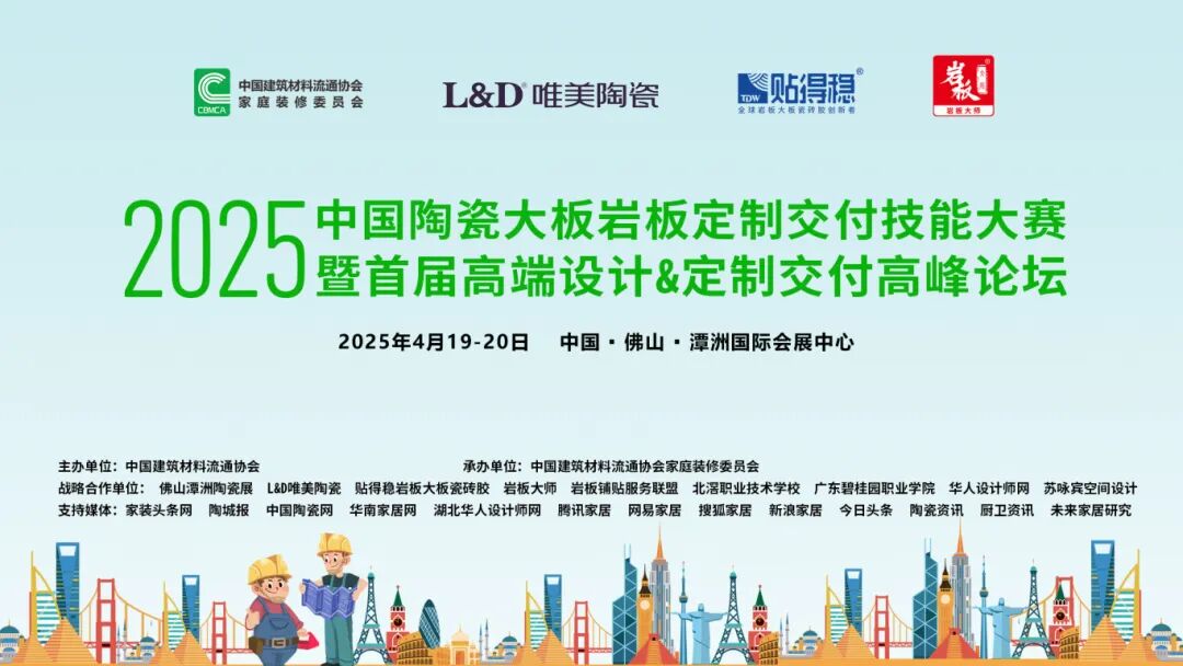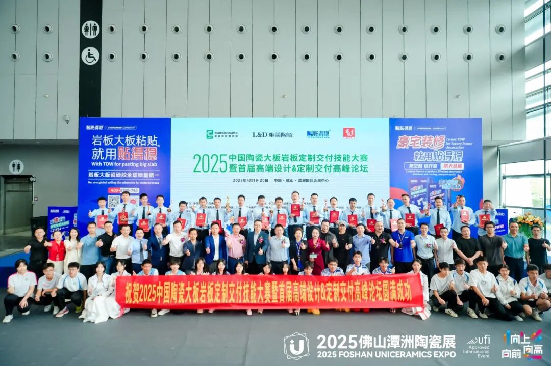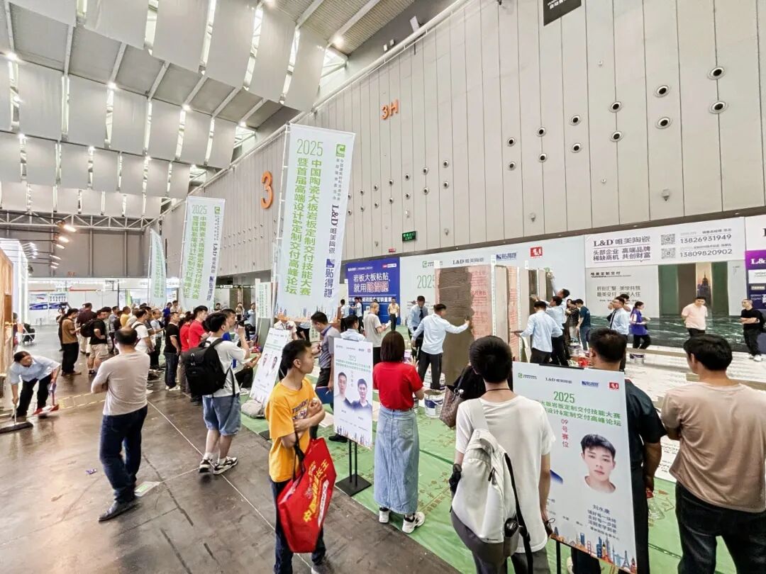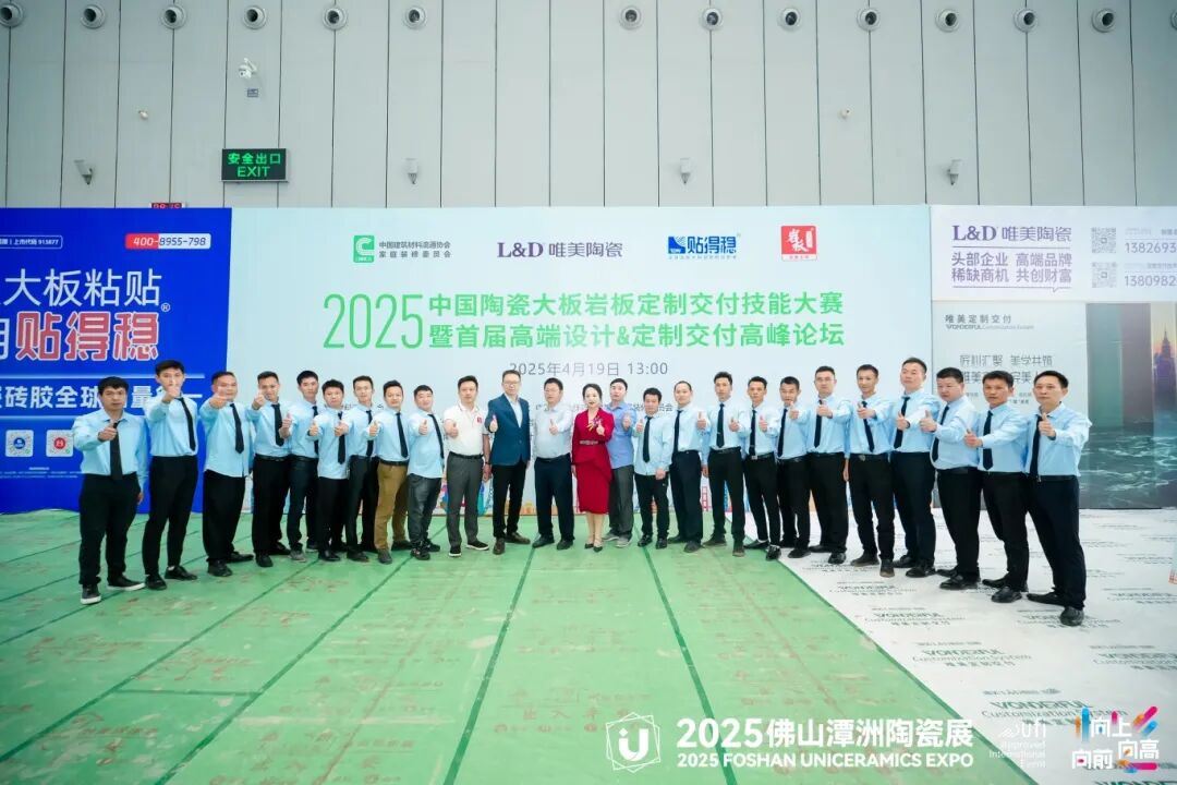 4月19日至20日,2025中国陶瓷大板岩板定制交付技能大赛暨首届高端设计&定制交付高峰论坛在佛山潭洲陶瓷展3号馆盛大举行。此次活动由中国建筑材料流通协会主办,中国建筑材料流通协会家装委员会承办,L&D唯美陶瓷、贴得稳岩板大板瓷砖胶冠名,岩板大师技术指导,佛山潭洲陶瓷展、岩板铺贴服务联盟、北滘职业技术学校、广东碧桂园职业学院、华人设计师网、苏咏宾空间设计战略合作,吸引了来自全国各地的岩板交付领域精英团队、设计师、装修公司及品牌商的积极参与,规模庞大,展示了陶瓷行业尤其是岩板定制交付领域的最新技术成果和创新理念。
