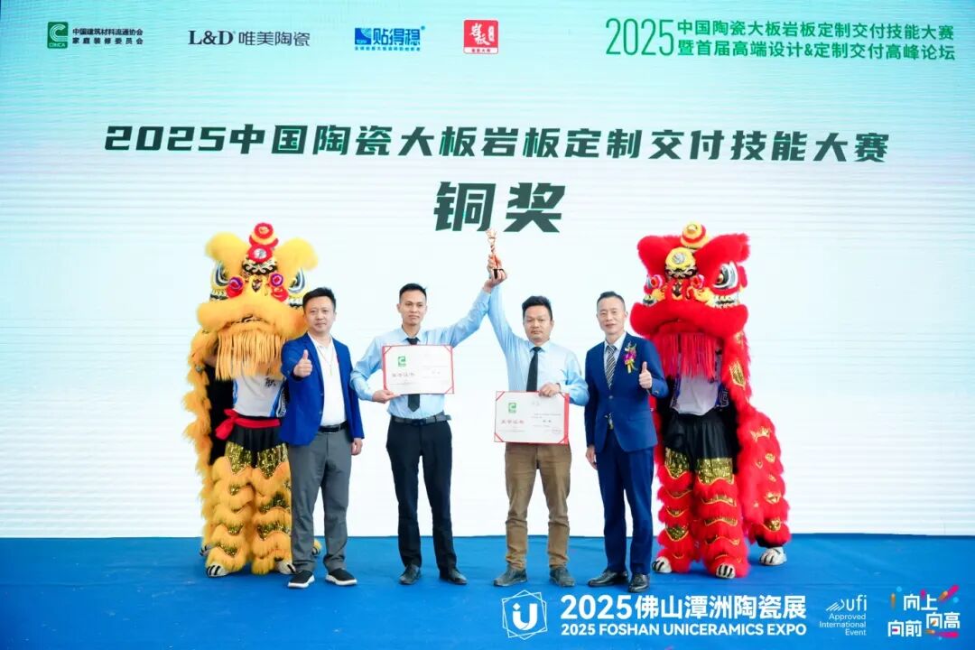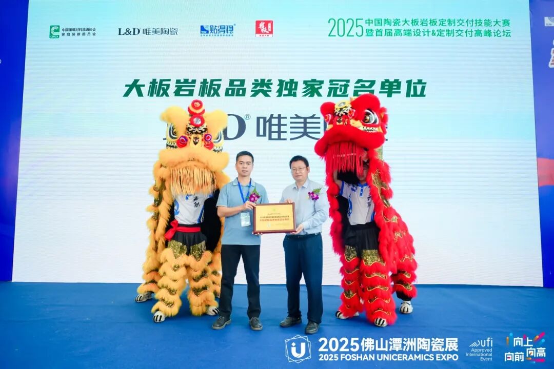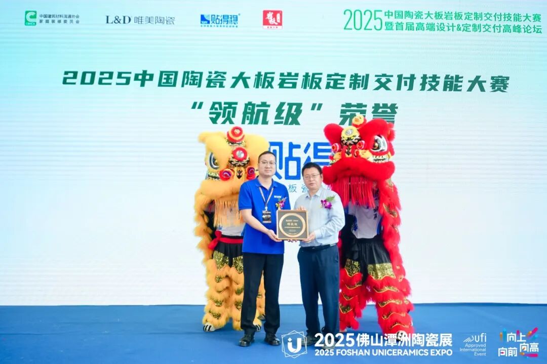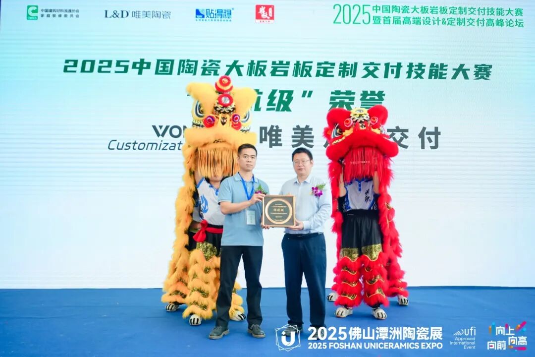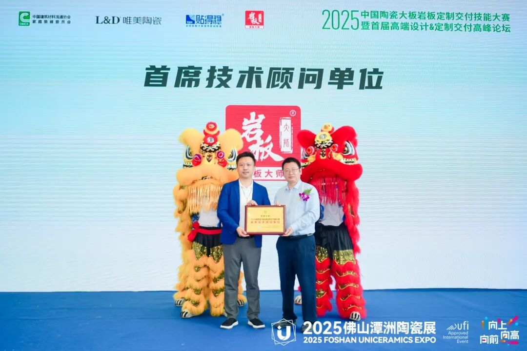 在经过激烈的比拼和精彩的展示后,2025中国陶瓷大板岩板定制交付技能大赛的颁奖典礼正式拉开帷幕。本次大赛设立了多个奖项,旨在表彰在比赛中表现突出的品牌和团队。