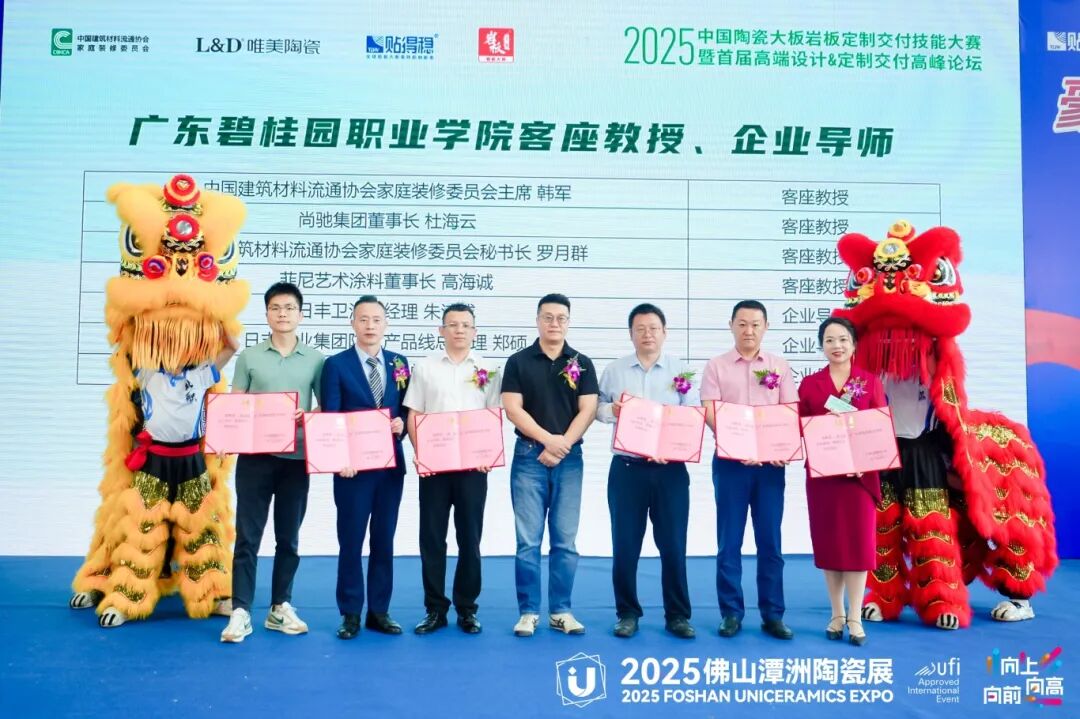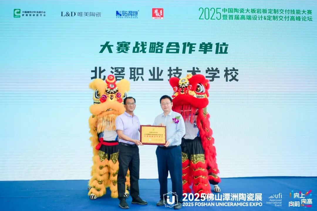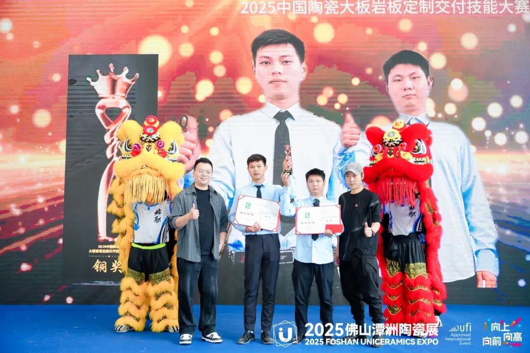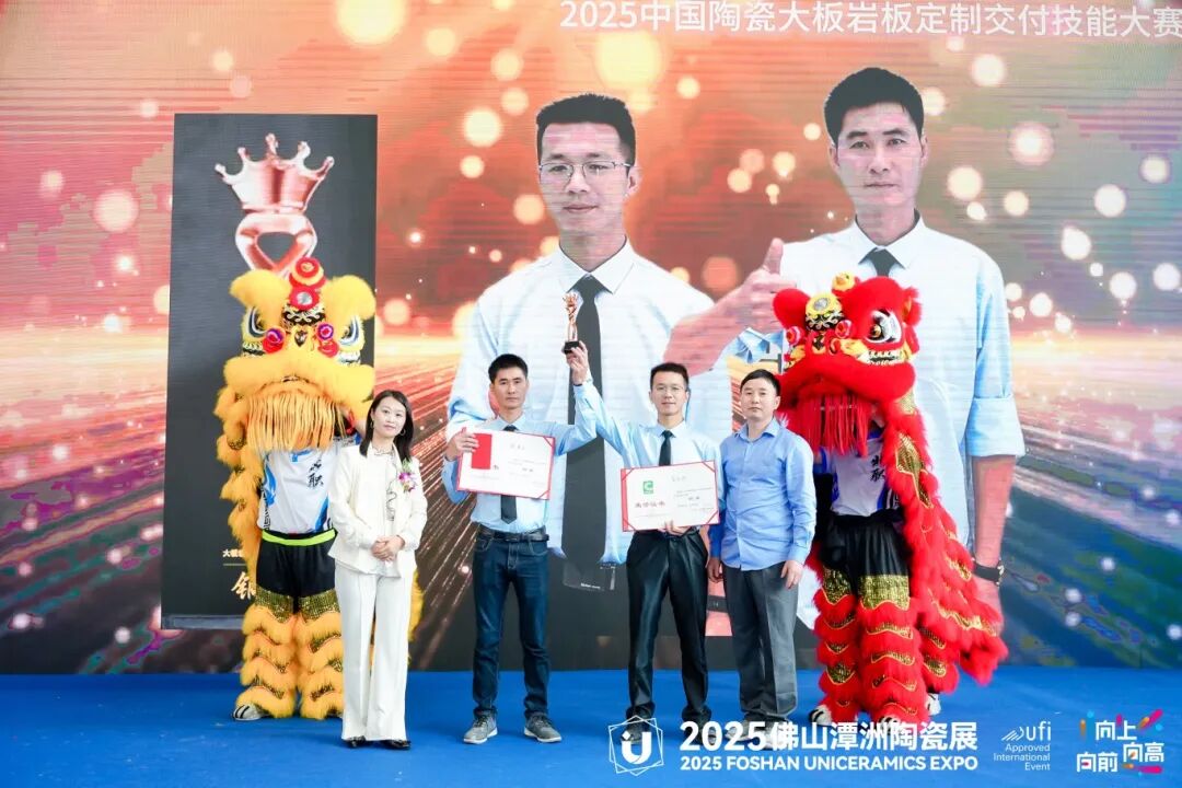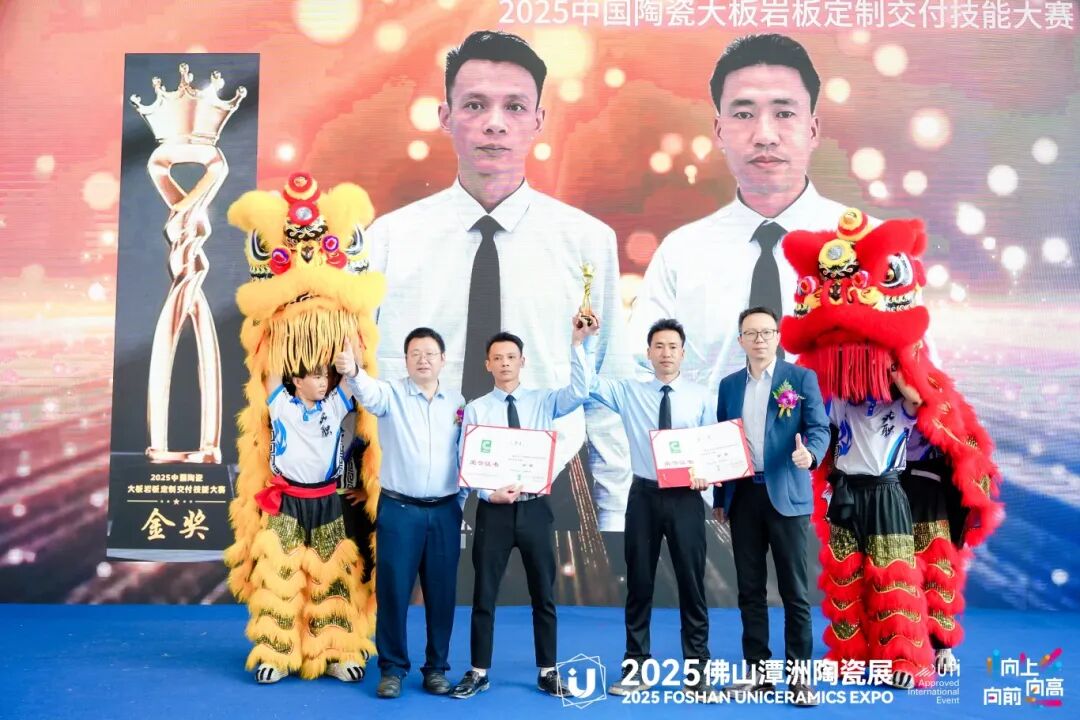 在经过激烈的比拼和精彩的展示后,2025中国陶瓷大板岩板定制交付技能大赛的颁奖典礼正式拉开帷幕。本次大赛设立了多个奖项,旨在表彰在比赛中表现突出的品牌和团队。