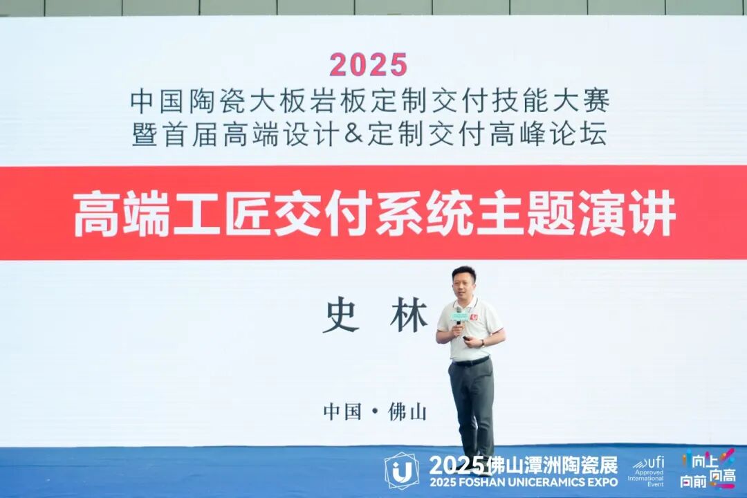 随后,岩板大师/岩板铺贴服务联盟创始人史林先生带来了“高端工匠交付系统”的主题分享。他介绍了高端工匠交付系统如何通过系统化管理与流程优化,提升施工质量和客户满意度,并结合多年的行业经验,分享了高端交付系统在实际操作中的价值与应用。