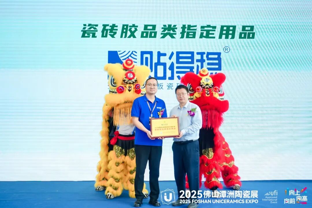 随后,贴得稳岩板大板瓷砖胶品牌荣获了“瓷砖胶品类独家冠名单位”、“瓷砖胶品类指定用品奖”、“领航级荣誉”三大奖项。贴得稳岩板大板瓷砖胶凭借其高品质的瓷砖胶产品,成为赛事的强力支持者。其产品在岩板大板施工中的优势,特别是在复杂施工环境下,提供了高效且安全的解决方案。
