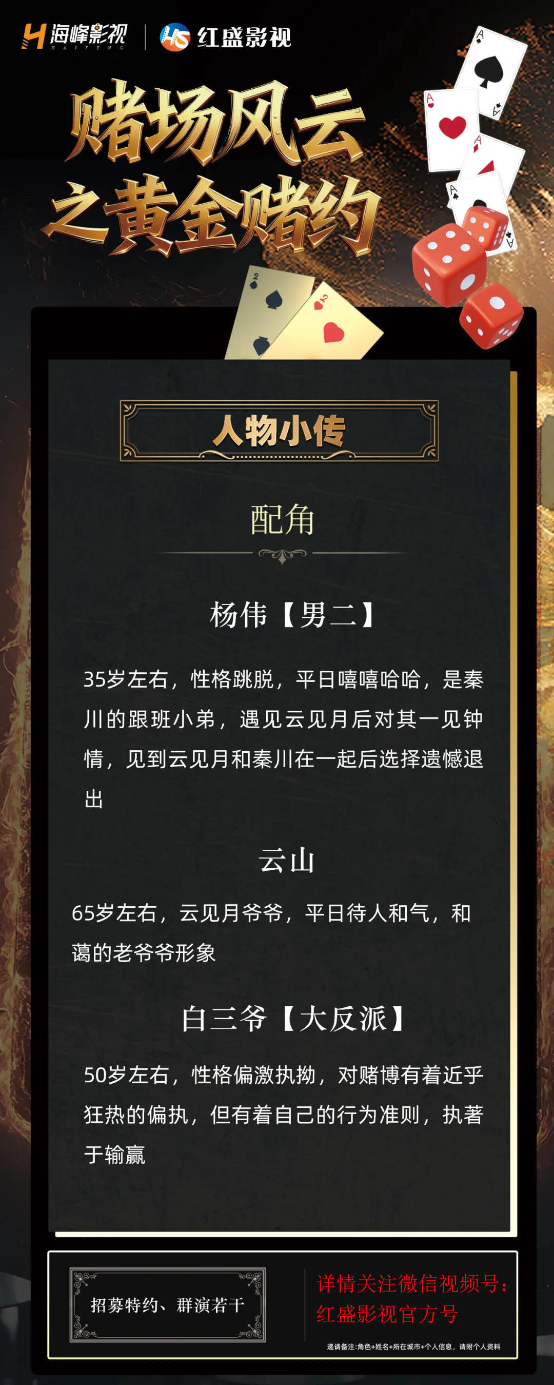 目前,《赌场风云之黄金赌约》独家播放平台锁定红果。海峰影视与红盛影视的双厂牌护航、姜皓文的港星演技加持、高能赌术剧情与素人海选的结合,有望为微短剧市场带来一部兼具港风质感与大众参与感的爆款作品。(详情关注微信视频号:红盛影视官方号)