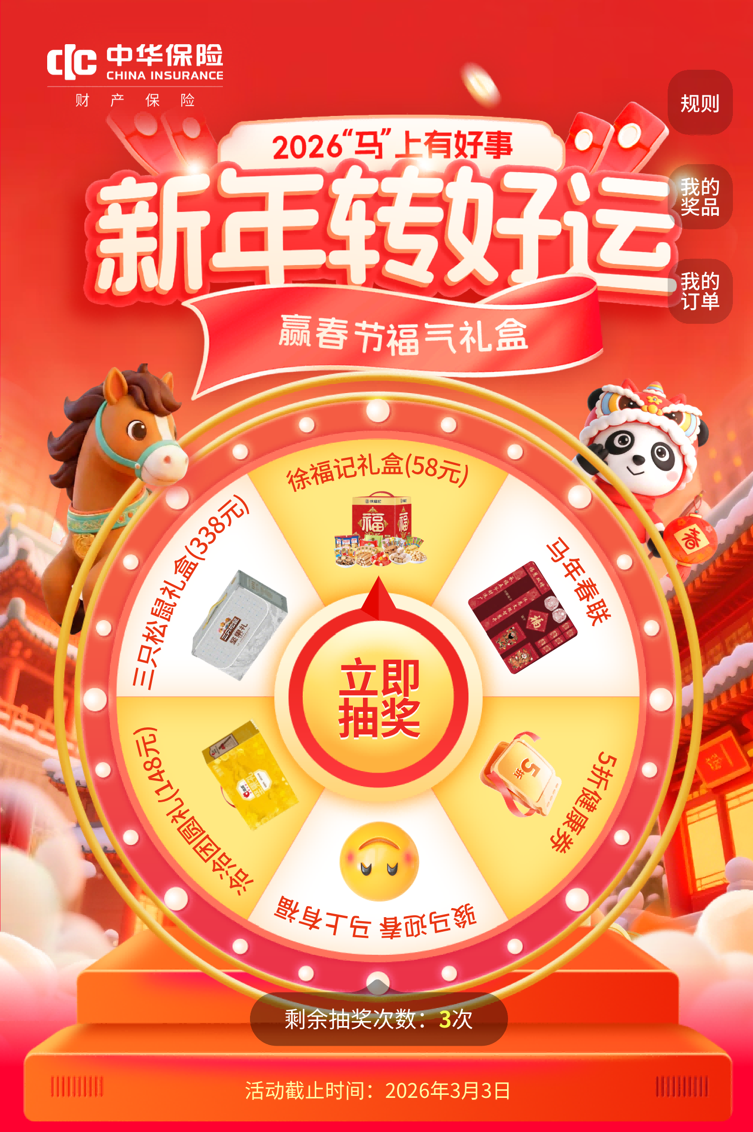 活动主题:中华财险2026“马”上有好事新年转好运活动火爆开启!