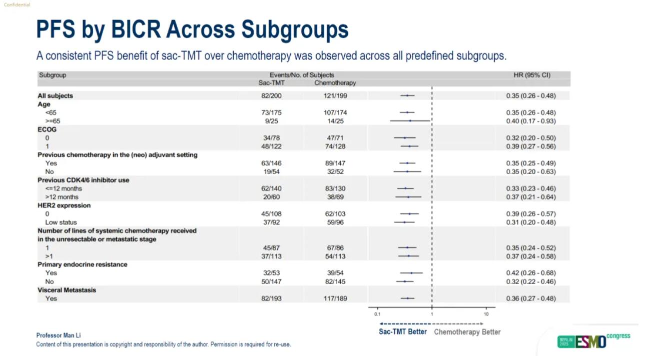 2. 无差别的患者获益:在所有预设亚组中(包括不同HER2表达水平等),均能观察到一致的PFS获益。