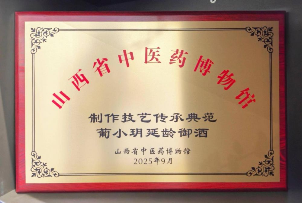 2025年9月27日,山西太原粤港澳大湾区晋商会联络处举行了一场意义特殊的授牌仪式。山西省中医药博物馆负责人杨履帆代表馆方,将 “制作技艺传承典范” 牌匾郑重授予澳门葡玥集团董事长张潮杰,以此表彰该集团旗下“葡小玥延龄御酒”在传承传统中药材制作技艺、推动技艺国际化创新方面的突出成就。