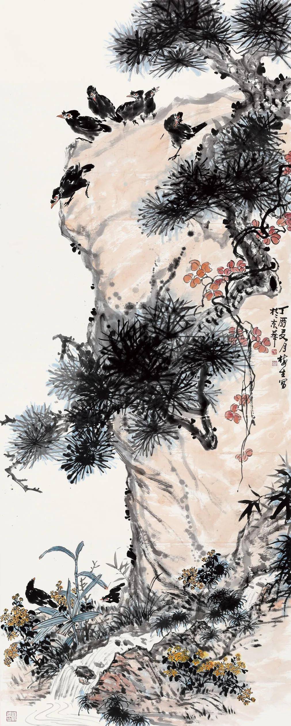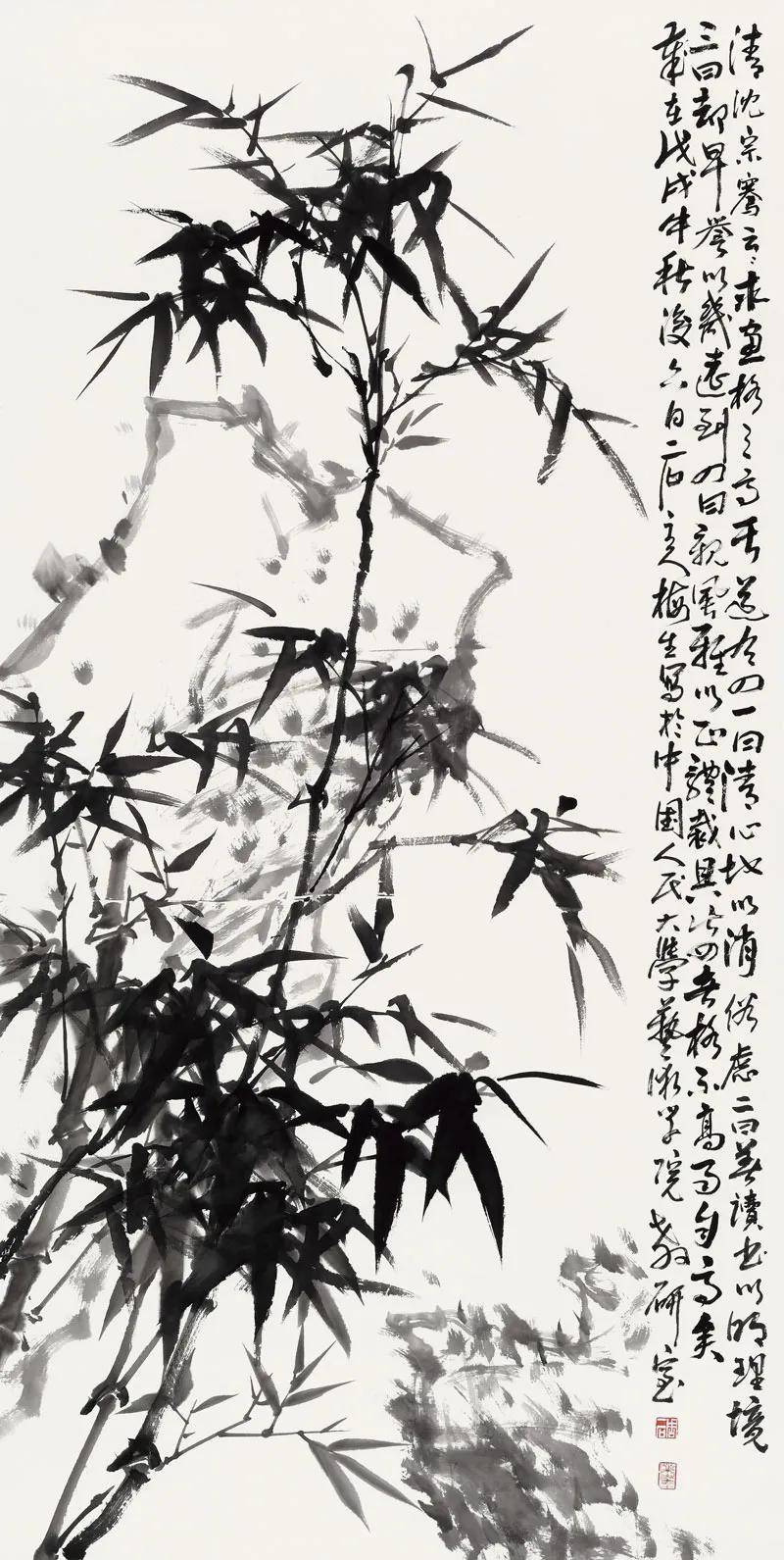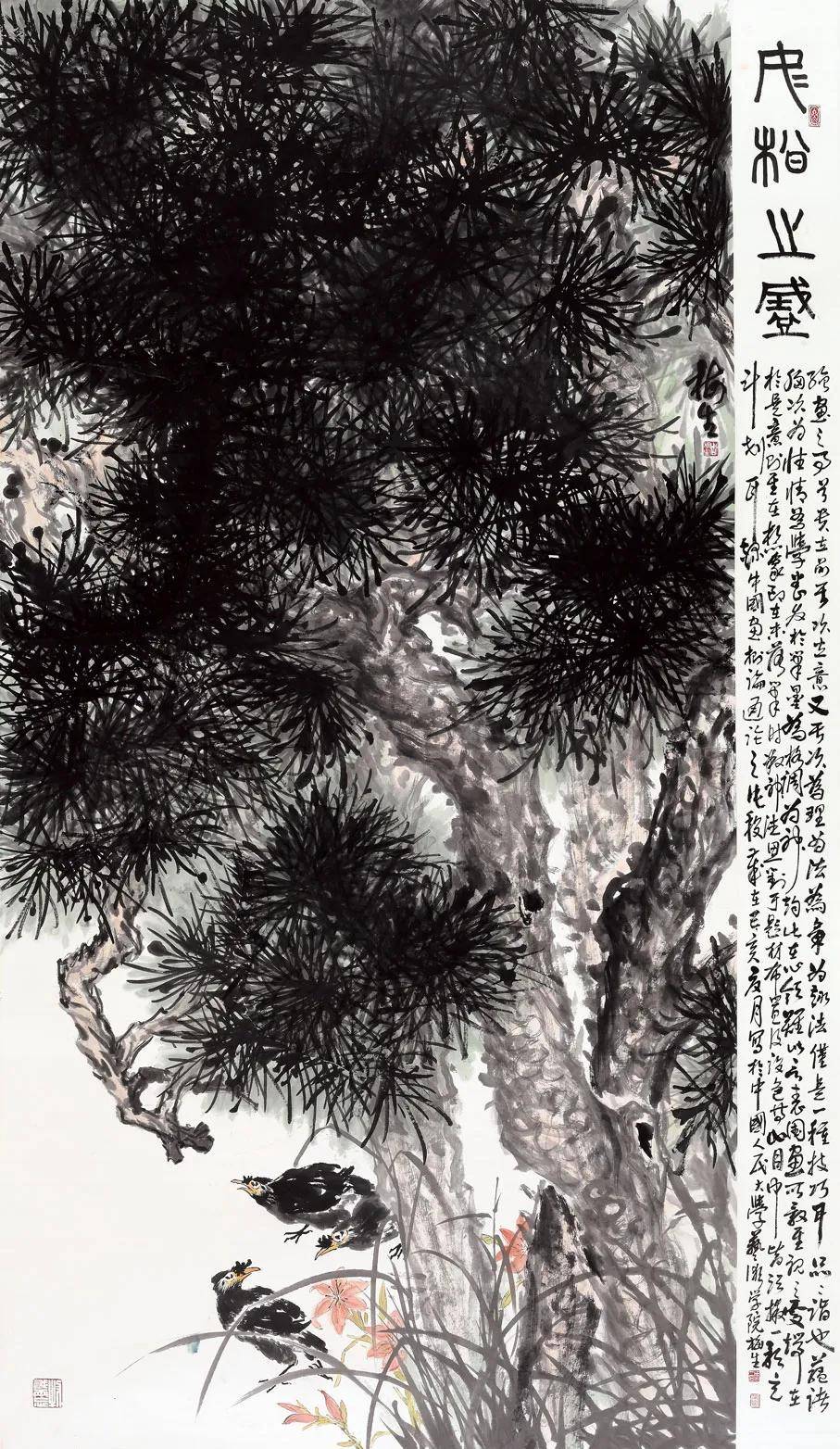 万幸的是,血脉里流淌的客家人坚韧品质,与家族四代传承的艺术基因,成了他困境中的光。斋号“问馨草堂”的他,是家中第四代画家:曾祖父为清末贡生,医术精湛且善书画,父亲是当地颇有名望的美术教师,家中往来的艺术友人,为宅院添了许多艺术气息。“我首先感恩祖宗遗传了客家人的优良基因和优秀的民族传统文化,感恩我永远思念的母亲!”这份感恩,化作他“不断提高完善自己”的毕生愿望,即便童年时光不堪回首,他仍执着寻找文化知识,追逐艺术理想,最终以笔墨为舟,在传统与现代的艺术长河中摆渡数十载,于当代中国画坛开辟出一方兼具古韵与新境的天地。