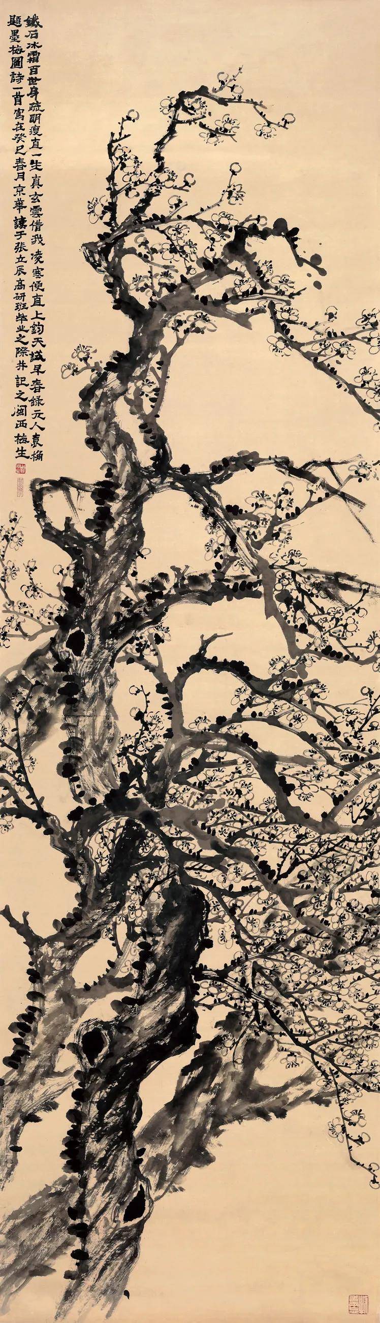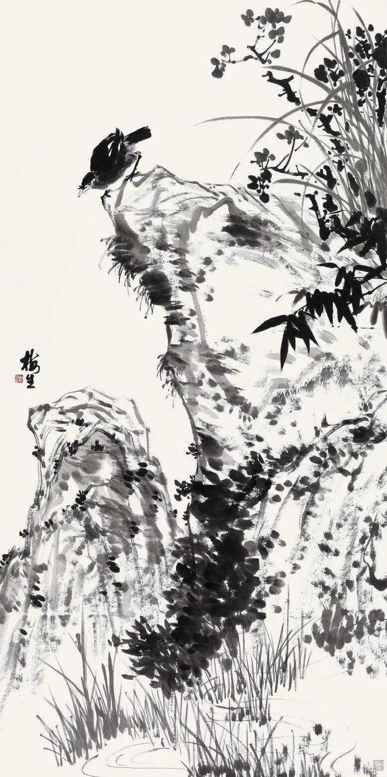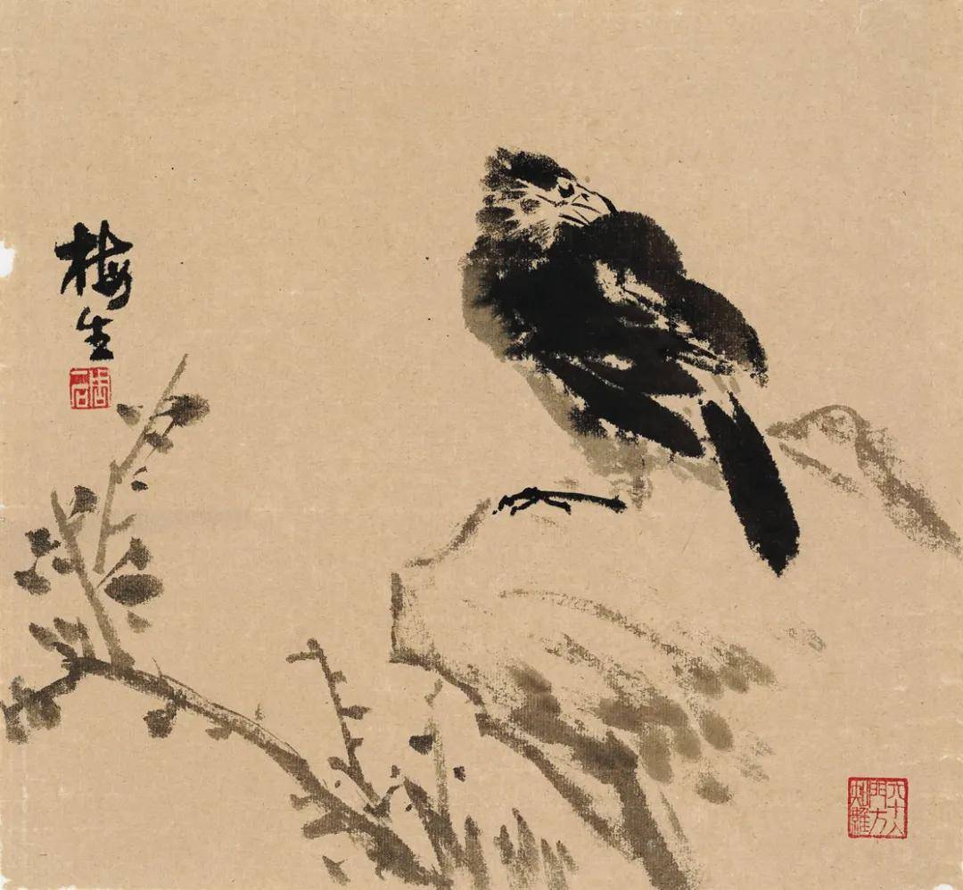 梅生字一石,擅大写意花鸟,曾先后深造于中国美院、中央美院,师承卢坤峰、张立辰先生。观其近作,精进昭昭,入古融新,心得可恃。其笔墨颇具传统功力,学明清诸家兼缶翁、白石、潘天寿,博观约取,庶几自家面目。尤画墨梅瘦石,芭蕉茶花,虬松偃柏,苍鹭八哥,秋芦风荻,皆行云流水,不假中途再构。所画多为巨制,情怀宏阔,笔端遒劲而有韧性,水墨淋漓富含刚柔,气势磅礴,收放自如,形神健拔,风骨老辣。