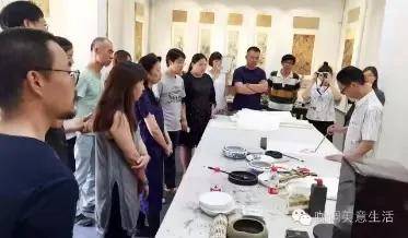 随后,我们现场书画交流,顿时画室墨香四溢。忽然,梅生兄说:这次来新余,走得匆忙,忘了带上印章。地球人都知道,一幅书画作品上没有作者的印鉴,那是要“大打折扣”的。我闻听,笑着说:如果梅生兄不嫌弃,我可以现场刻印一方。于是,一个颇有意味的画面呈现在众人面前:梅生兄和周剑兄作画、题字,我刻印,临时“三人组合”成为一段美好回忆,这一幕也被同行的新余电视台知名记者、主持人谢小勇用手机记录下来,发在朋友圈——颇有一种“现场直播”的意味。