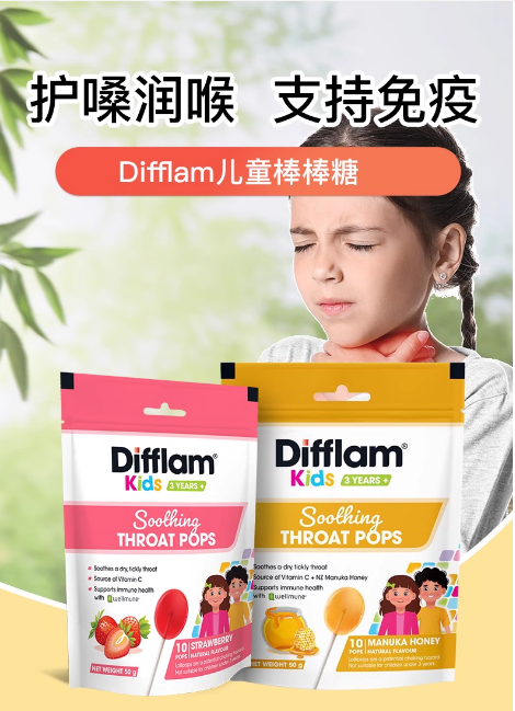 在儿童的奇妙世界里,有一款神奇的棒棒糖,它可不是普通的糖果哦,而是拥有着舒缓喉咙干燥魔力的 Difflam 儿童润喉糖棒棒糖。