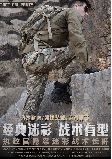- 迷彩图案是这款战术裤的标志性元素之一。迷彩不仅仅是一种装饰,更是一种文化和风格的象征。在军事领域,迷彩有着重要的伪装意义。而在日常生活中,迷彩元素则赋予了裤子一种强烈的男性荷尔蒙气息。当你穿着这条带有迷彩图案的战术裤走在街头,仿佛在向世界宣告自己的独特品味和对冒险、探索的热爱。
