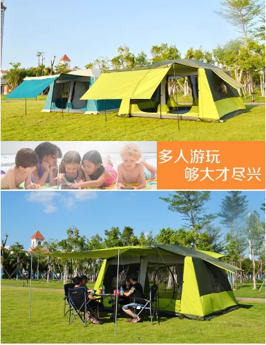 - 这种帐篷的大容量是其显著特点。可容纳 8 - 10 人的空间,无论是家庭聚会还是团队建设活动都能轻松应对。帐篷内部划分成两房两厅的格局,就像把家搬到了户外。其中,“房间” 部分可以为露营者提供相对私密的休息空间,人们可以在这里铺开睡袋,安心休息。